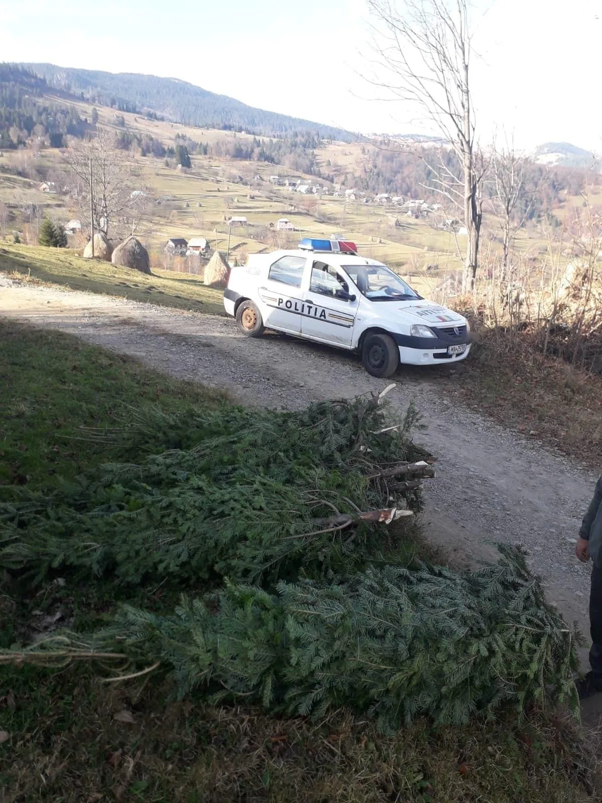 Polițiștii au identificat și ridicat, duminică, în vederea confiscării 248 pomi de Crăciun, găsiți abandonați pe raza comunei Săcuieu.