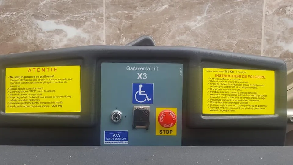 - o zonă de acces cu elevator pentru persoanele cu dizabilități.