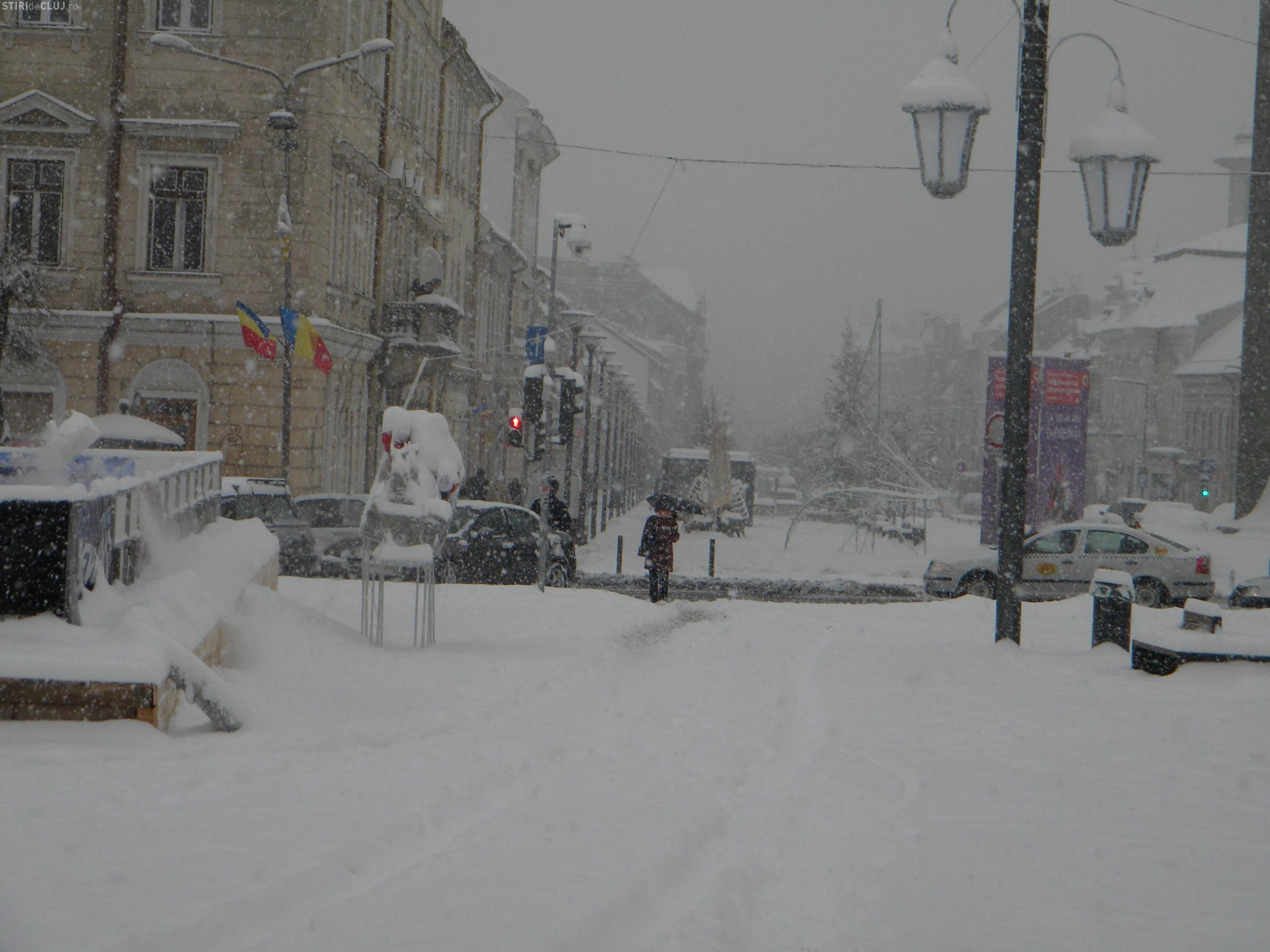 Ninsoare ca în povești în tot județul Cluj. Zăpada cade necontenit încă de sâmbătă, de la ora 17.00, iar meteorologii anunță că nu se va opri.