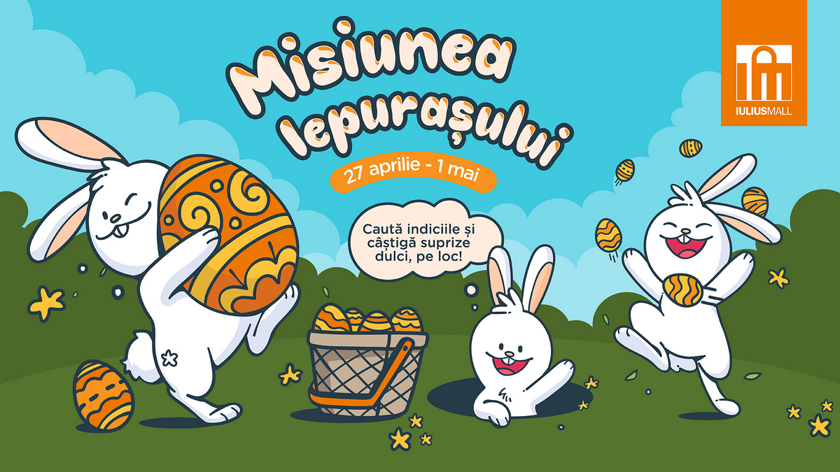 Venirea Paștelui este un prilej de bucurie pentru întreaga familie: mese bogate în bucate alese, ouă roșii ciocnite alături de cei dragi și atmosfera specifică de sărbătoare ce învăluie întreaga casă. Totuși, cei mai nerăbdători sunt copiii, care așteaptă cu sufletul la gură să vadă ce cadouri le aduce Iepurașul de Paște. Doar că în acest an Iepurașul este într-o încurcătură, pentru că și-a pierdut cheia de la depozitul de jucării... problemă ce poate fi rezolvată dacă vii în Iulius Mall Cluj alături de cel mic, care poate participa la Misiunea Iepurașului.