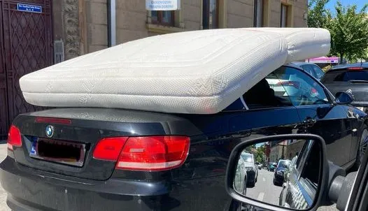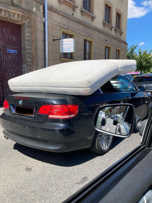 ,,Îi mai știți pe cei cu BMW dar care stau în garsonieră?”- Un șofer din Cluj a circulat liniștit prin trafic cu salteaua pe mașină - FOTO