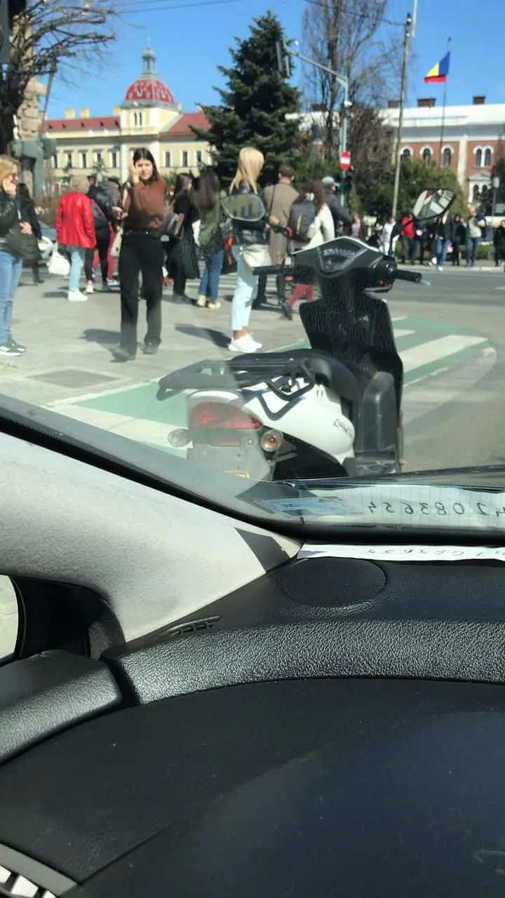 Un livrator de mâncare de la Glovo și-a abandonat scuterul la trecerea de pietoni de lângă Cinema Victoria. Scena a fost fotografiată de un șofer, dar nu se știe exact ce s-a întâmplat.