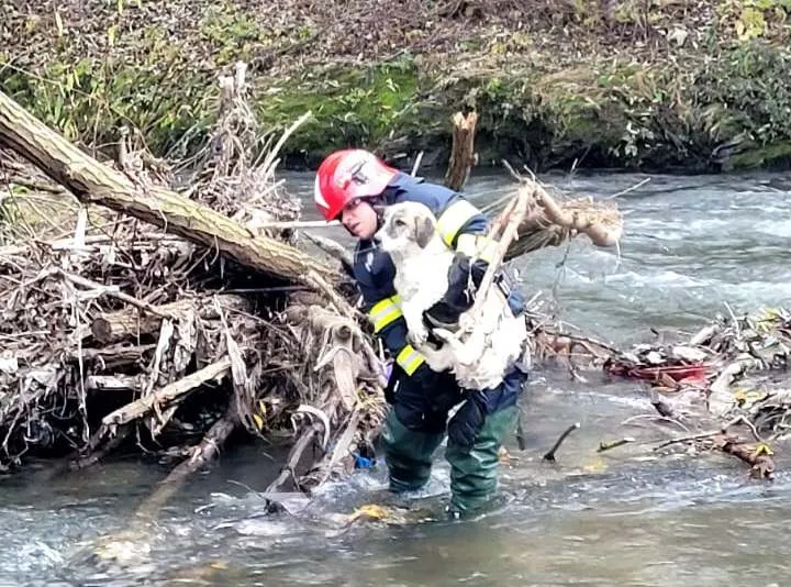 „Pompierii din cadrul Detașamentului 1 Cluj-Napoca au intervenit pentru salvarea unui câine, care a rămas izolat pe o insulă din râul Someșul Mic, în zona străzii Beiușului, Cluj-Napoca.