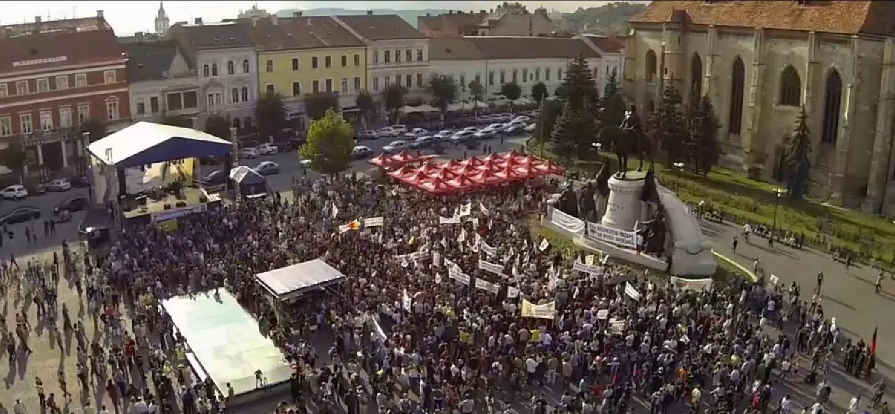 Imagini AERIENE de la protestul Roșia Montană de la Cluj! S-a filmat cu o dronă aeriană - VIDEO și FOTO