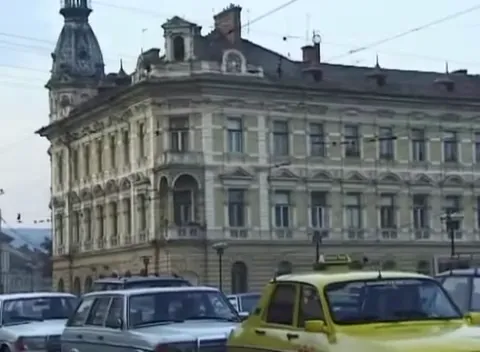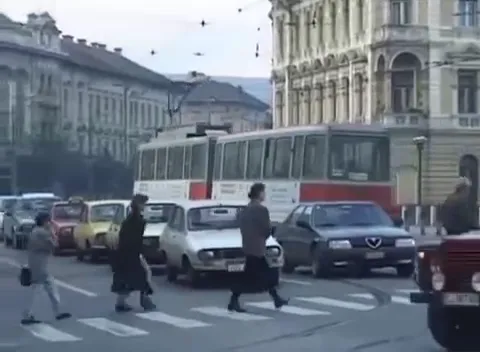 Centrul orașului era cenușiu (imaginile sunt de la intersecția George Barițiu - strada Horea - Piața Mihai Viteazu - Regele Ferdinand), iar autovehiculele de pe stradă par acum învechite, cu toate că apăruseră și ”bijuterii” din Occident. Mijloacele de transport în comun nu au apucat să fie schimbate, multe fiind date în folosință în timpul regimului comunist și exploatate din greu.