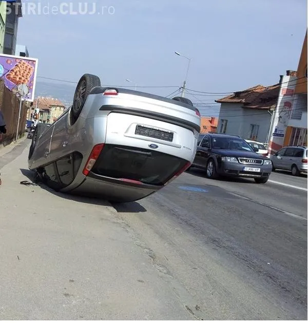 Imagini cu mașina răsturnată pe Calea Turzii: ”A fost sabotaj!” VIDEO CAMERA SUPRAVEGHERE