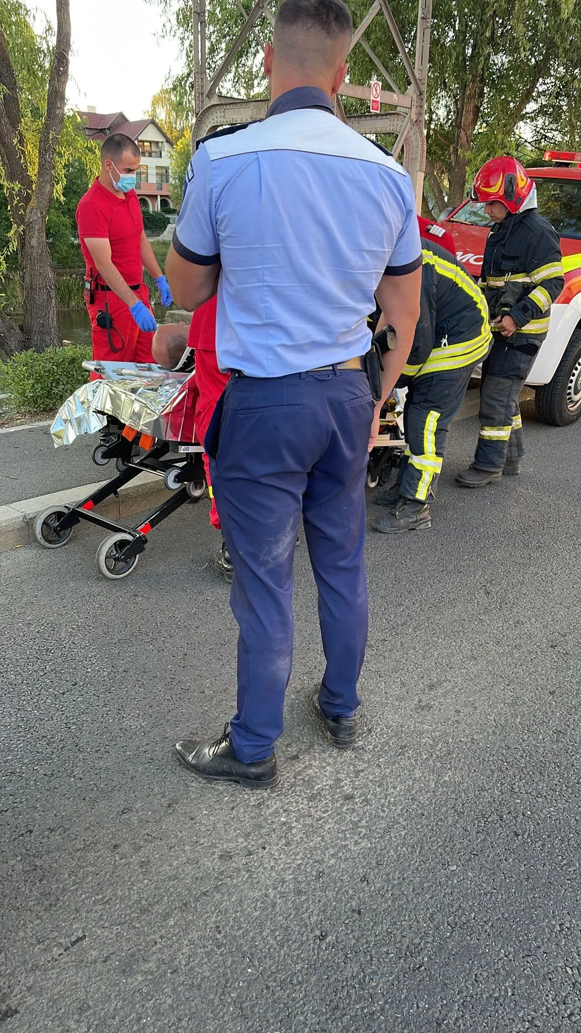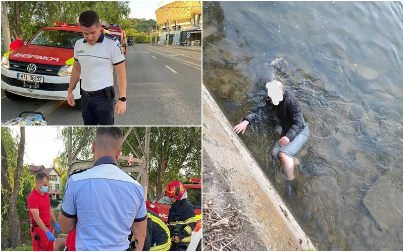 Se pare că un echipaj de la poliția rutieră a observat bărbatul căzut în apă și a chemat o ambulanță SMURD.