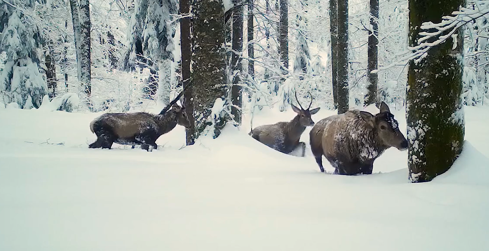 „Într-un decor de basm, cerbii își croiesc drum prin zăpada neatinsă a Parcului Natural Apuseni. Simbol al puterii și grației, acești magnifici locuitori ai pădurii ne amintesc cât de spectaculoasă este natura atunci când o lăsăm să-și urmeze cursul.