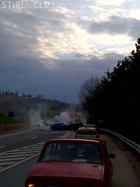 Imagini de la accidentul de pe Feleac! Din masinile implicate iesea fum VIDEO