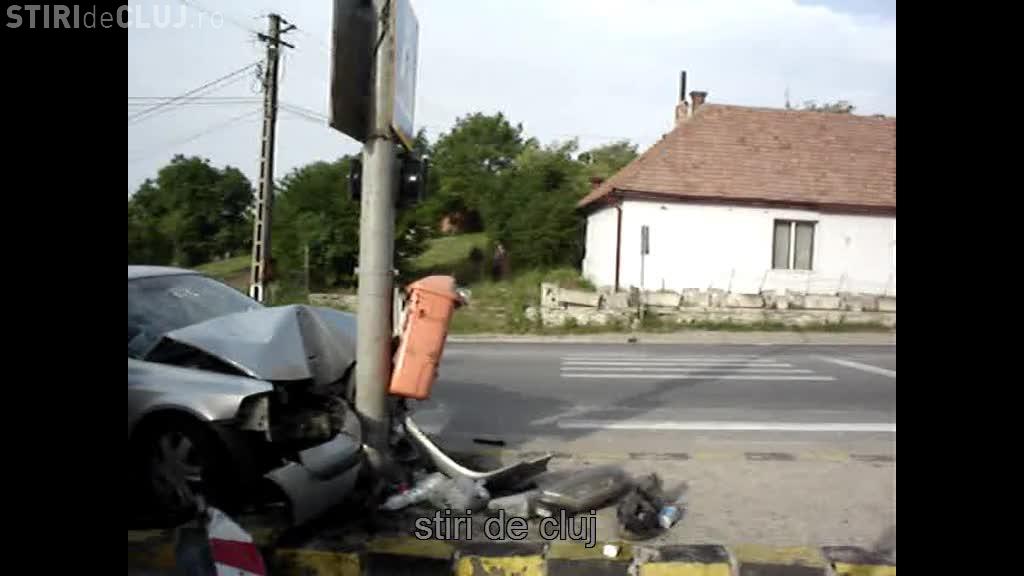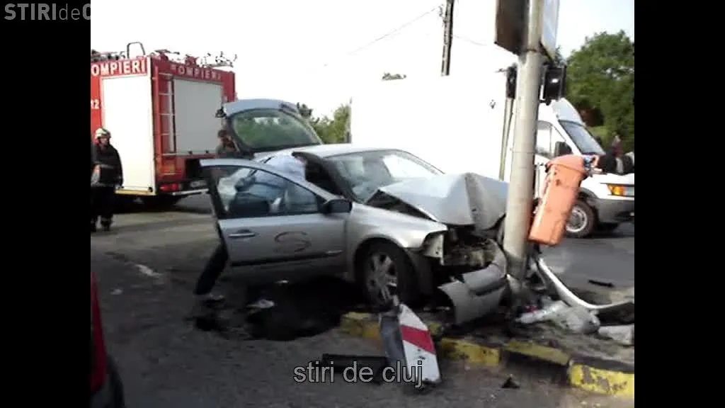 Imagini de la accidentul din Feleacu! Un șofer a adormit la volan și s-a înfipt într-un stâlp - VIDEO