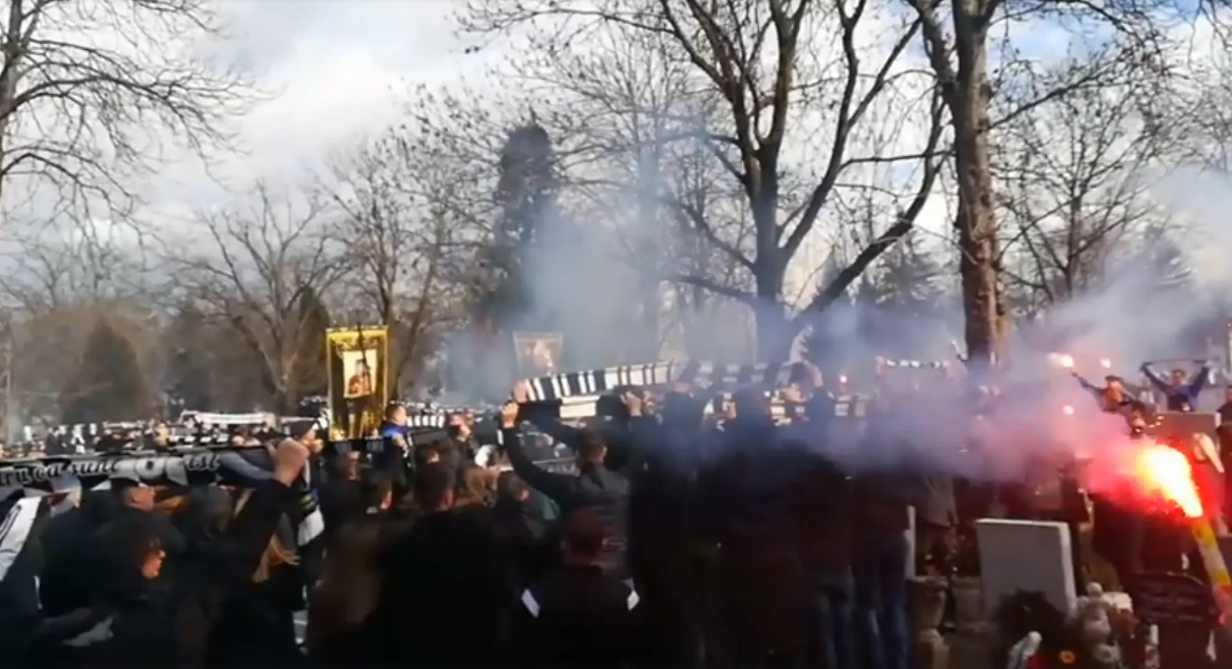 La înmormântarea de sâmbătă, suporterii U Cluj au cântat imnul echipei și au aprins torțe, onorându-l astfel pe cel dispărut prea repede.