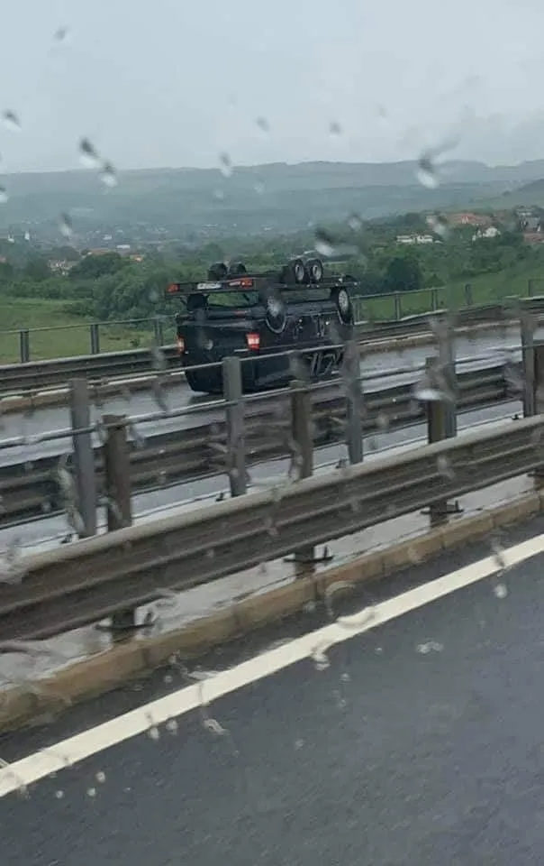 Probleme în trafic pe Autostrada A3, la kilometrul 16, din cauza unei mașini răsturnate pe carosabil.