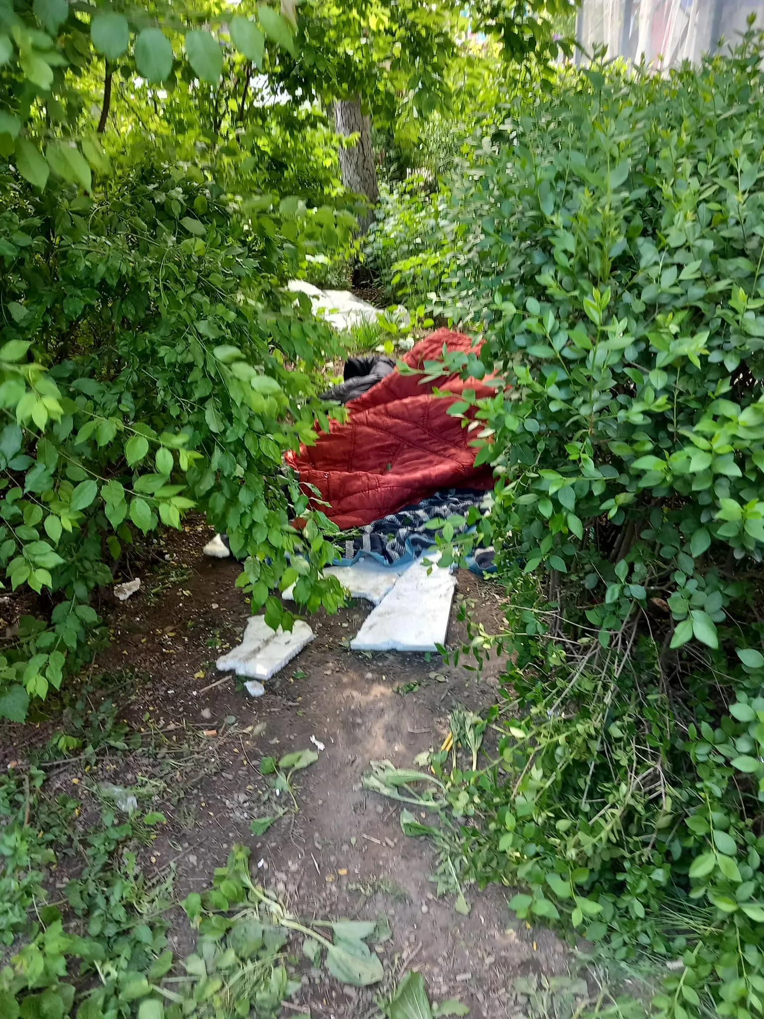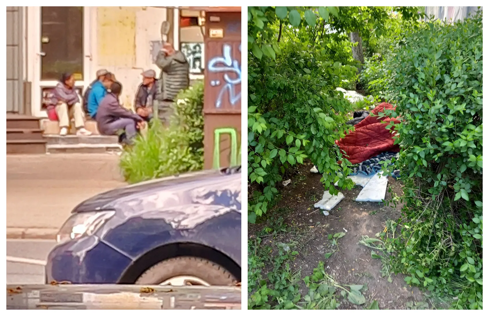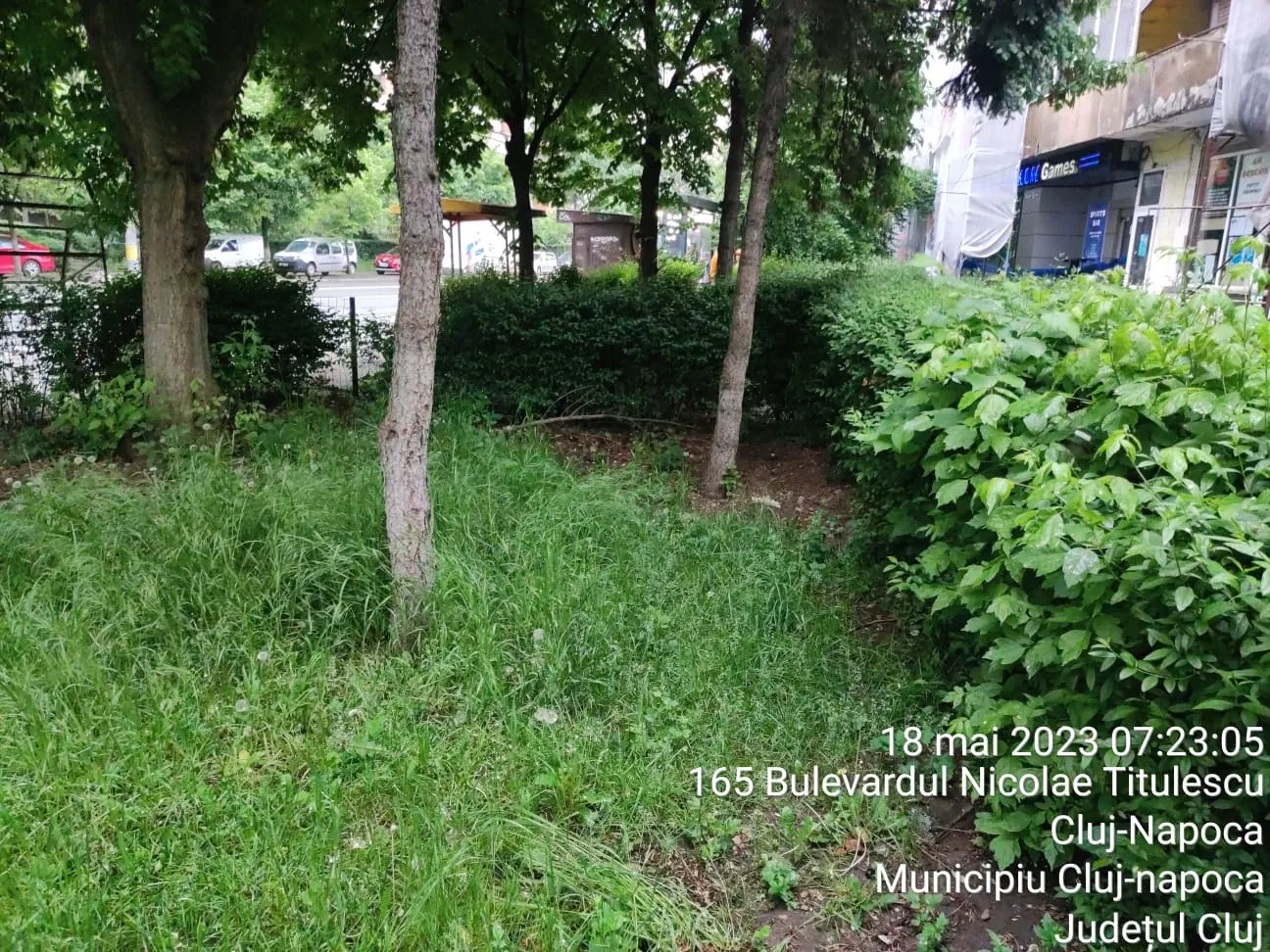 „Poze făcute pe B-dul N.Titulescu, langa cele 4 (!!!) săli de jocuri de noroc. Aici, in fata uneia dintre ele își duc viața oamenii fără adăpost ai cartierului, ei sunt cei pe care îi vedeți în poze. Micul spațiu verde, unde unul dintre ei tocmai își face treburile, iar mai târziu altul doarme cu sacul de dormit deasupra "treburilor" se afla în spatele stației „Bistriței”, a relatat o clujeancă.
