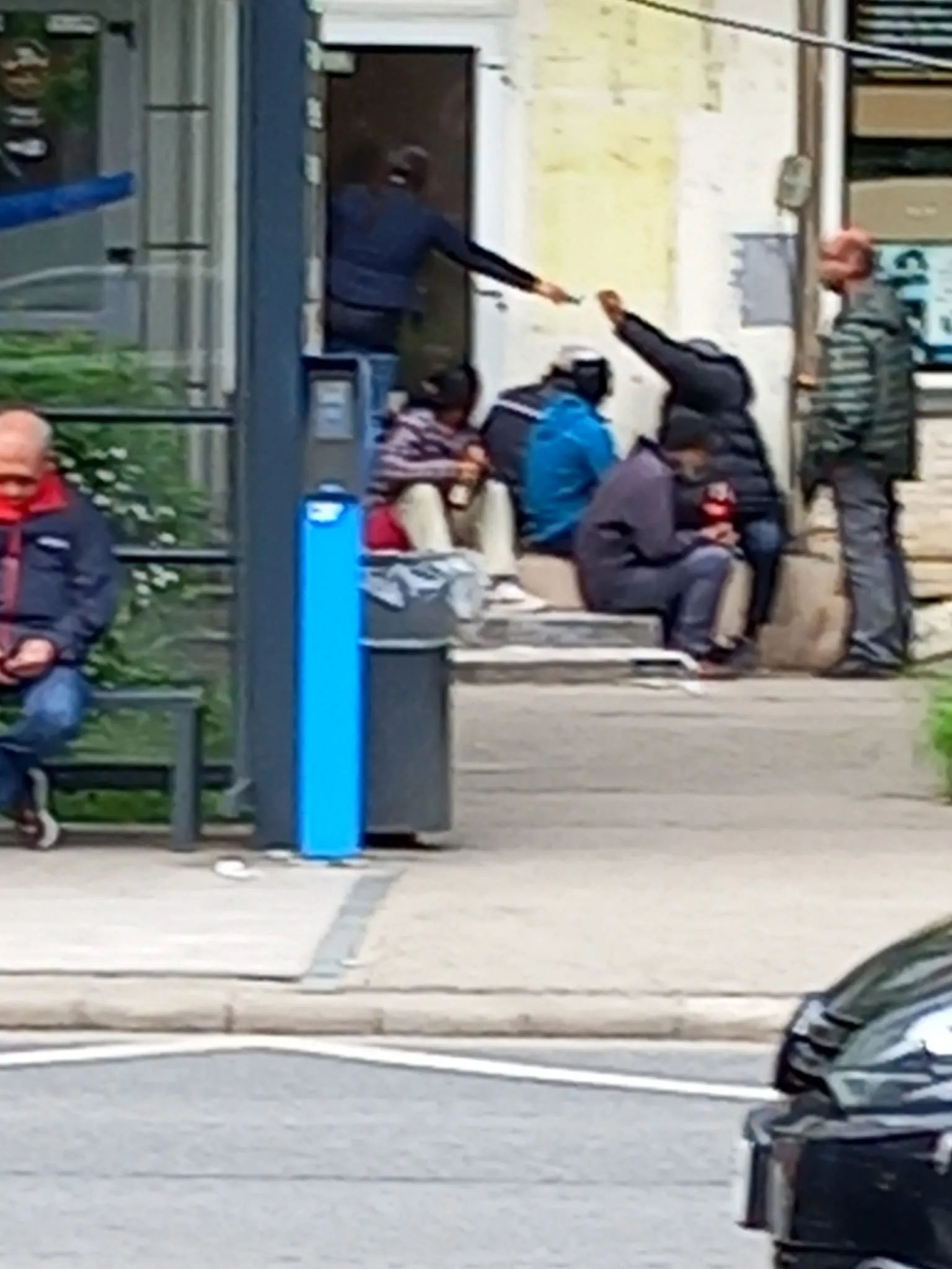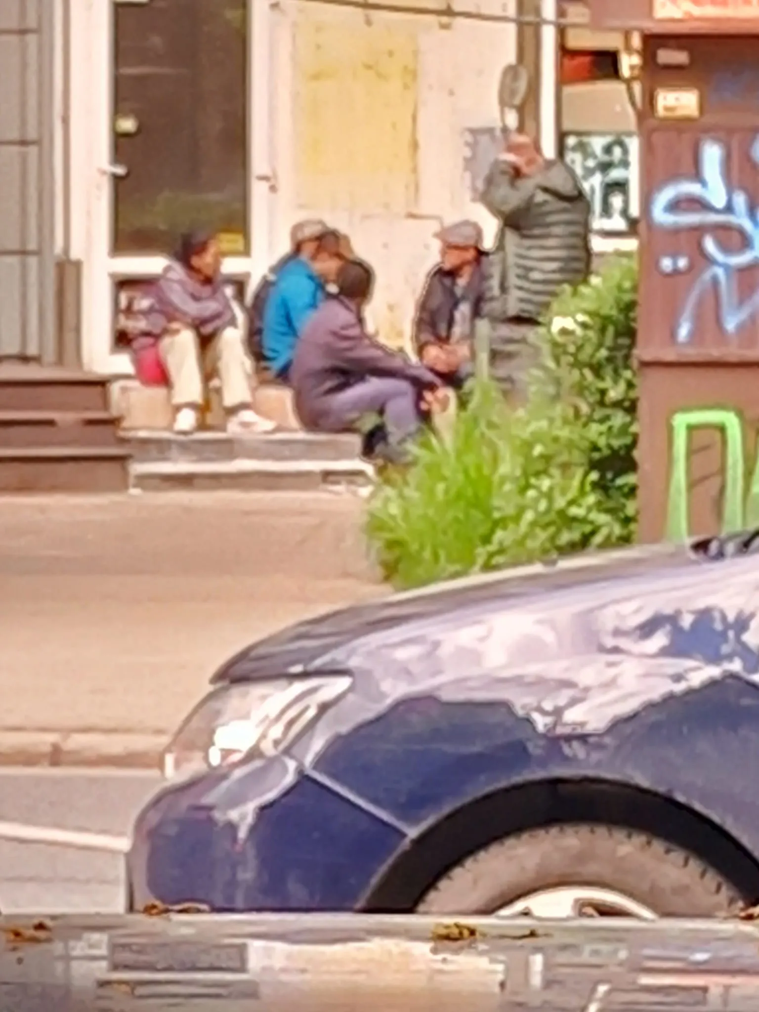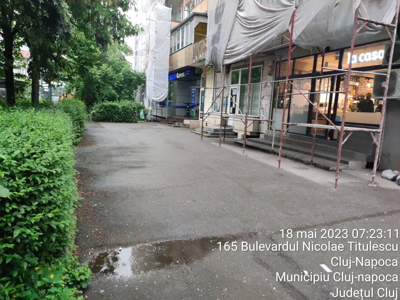 „Poze făcute pe B-dul N.Titulescu, langa cele 4 (!!!) săli de jocuri de noroc. Aici, in fata uneia dintre ele își duc viața oamenii fără adăpost ai cartierului, ei sunt cei pe care îi vedeți în poze. Micul spațiu verde, unde unul dintre ei tocmai își face treburile, iar mai târziu altul doarme cu sacul de dormit deasupra "treburilor" se afla în spatele stației „Bistriței”, a relatat o clujeancă.