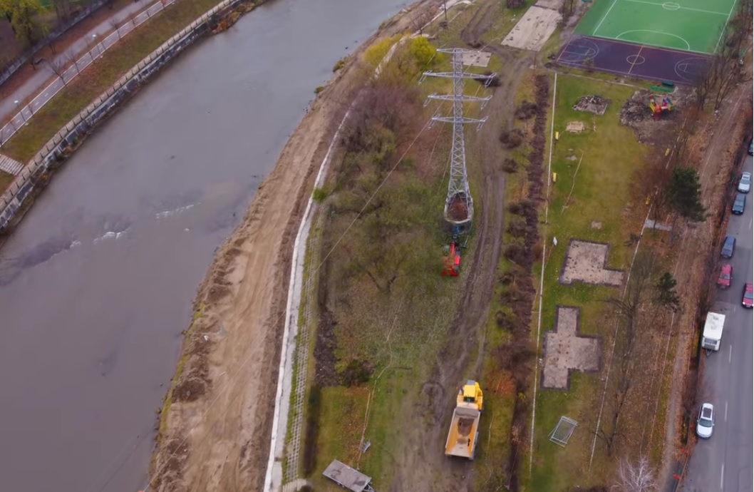 Imagini din dronă cu lucrările de amenajare a râului Someș, din Grigorescu - VIDEO