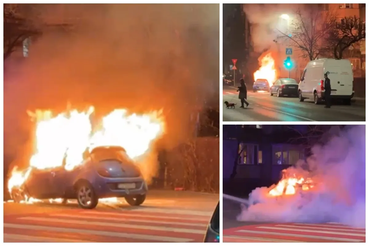IMAGINI DRAMATICE cu incendiul de pe strada Donath din Cluj! O mașină a ars ca o torță - FOTO și VIDEO