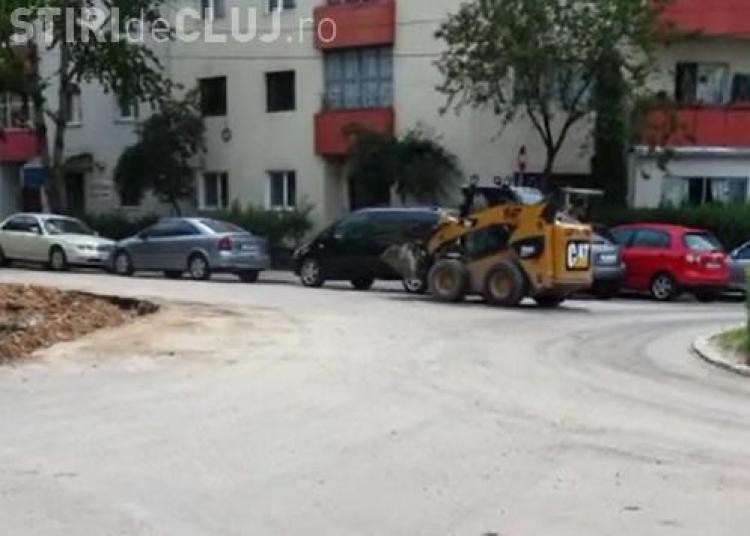Unul dintre muncitorii care lucrau la reabilitarea străzii Ion Meșter din cartierul Mănăștur s-a apucat să facă ”drifturi” cu excavatorul în mijlocul străzii.
