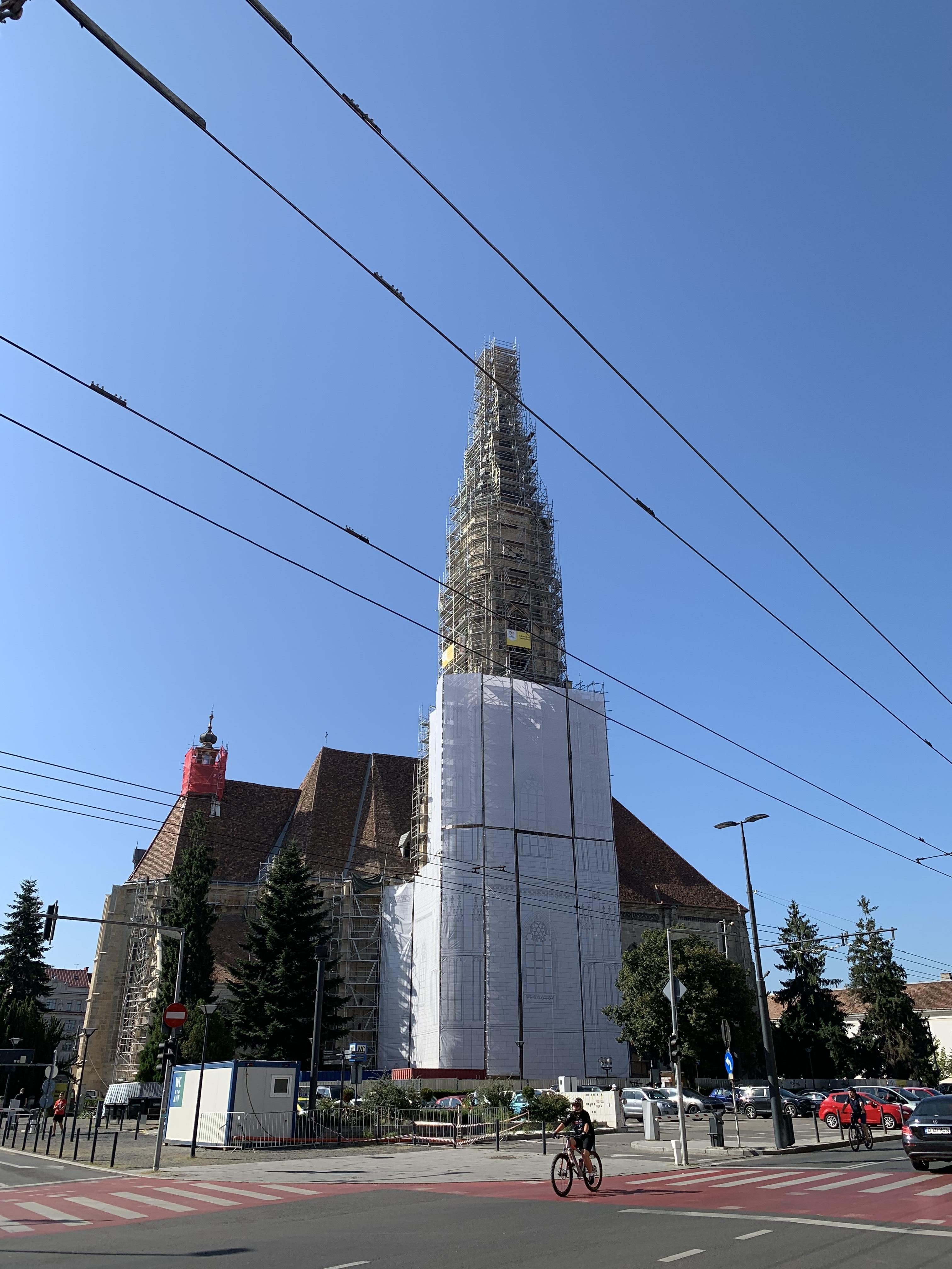 Biserica Sfântul Mihail din centrul Clujului este cel mai important monument al orașulului. Aceasta este în plin proces de restarare, iar meșterii au ajuns la nivelul crucii și la turnul bisericii.