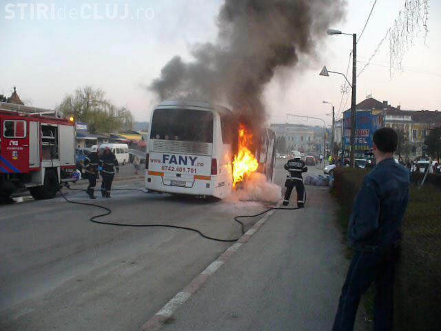 Mai multe persoane au incercat sa stinga cu extinctoarele incendiul izbucnit in Dej la autocarul firmei Fany, care transporta la Bucuresti 30 de persoane, intre care si cateva gimnaste.