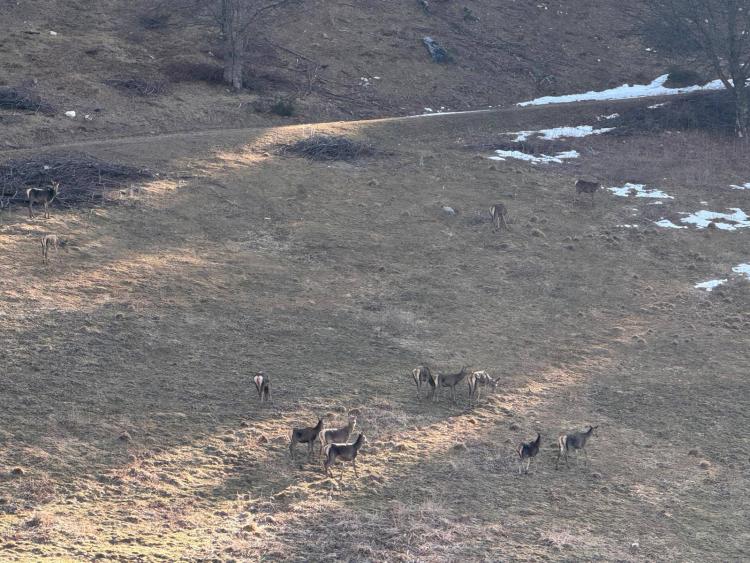 Imagini spectaculoase! Turmă de CERBI, surprinsă pe o pajiște din Cluj / Superbele animale se bucură de primele semne de primăvară FOTO