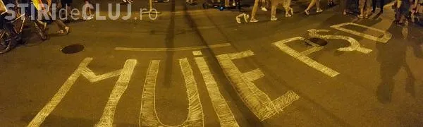 În fața Prefecturii Cluj a apărut și un desen uriaș, cu mesajul ”M...PSD!”.