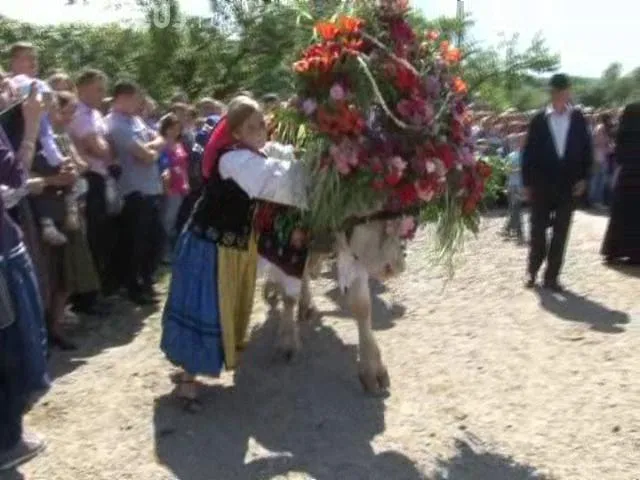 Unul dintre boi a avut pe cap o cununa impletita din flori de camp si a trebuit sa fie prins de o fata aleasa de batranii satului. Tanara a avut sarcina de a plimba boul de coarne, pentru a arata ca este vrednica sa se marite.