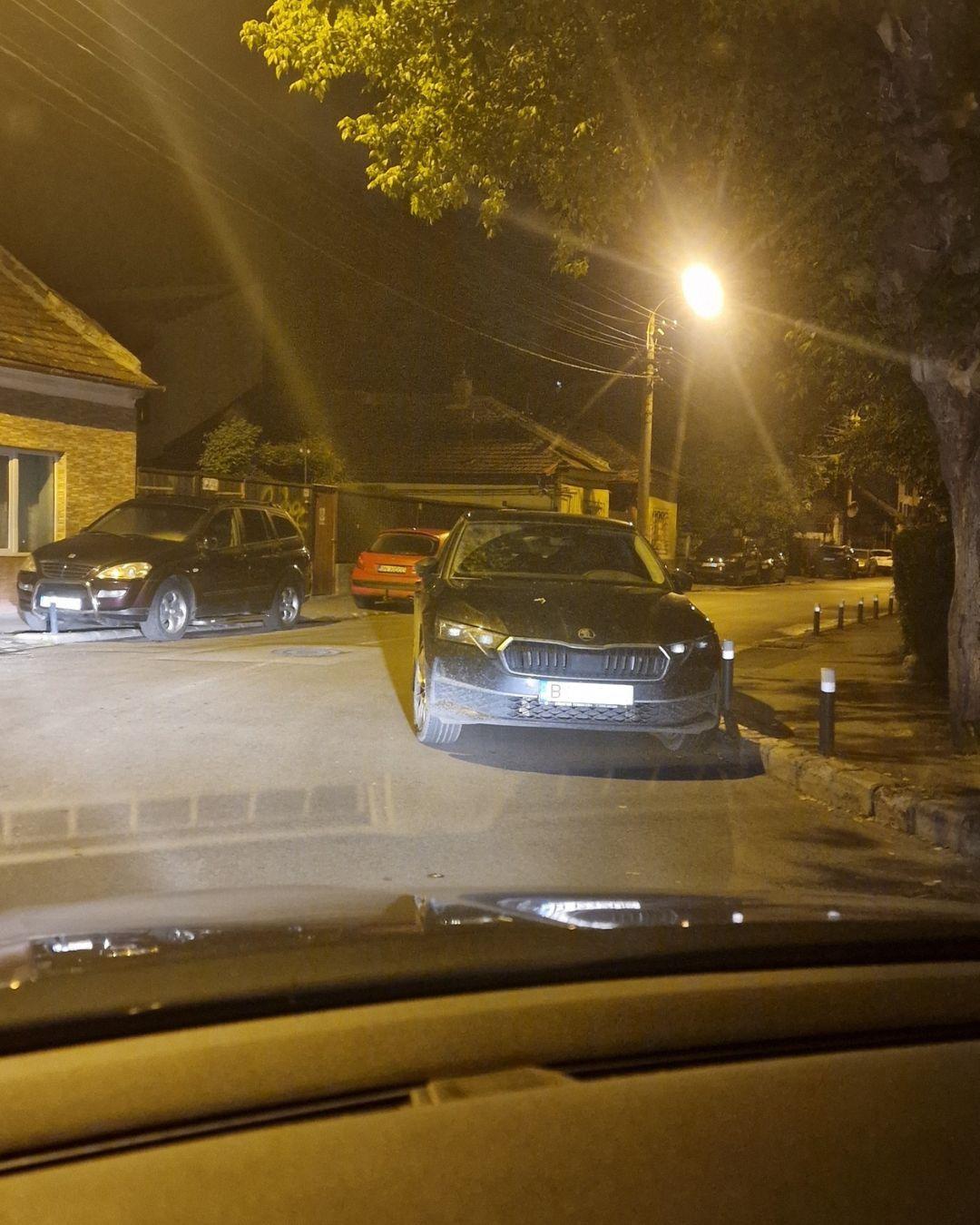 S-a întâmplat pe o stradă de cartier, când o Skoda cu numere de București a fost lăsată într-o poziție care sfidează atât logica, cât și regulile de circulație.