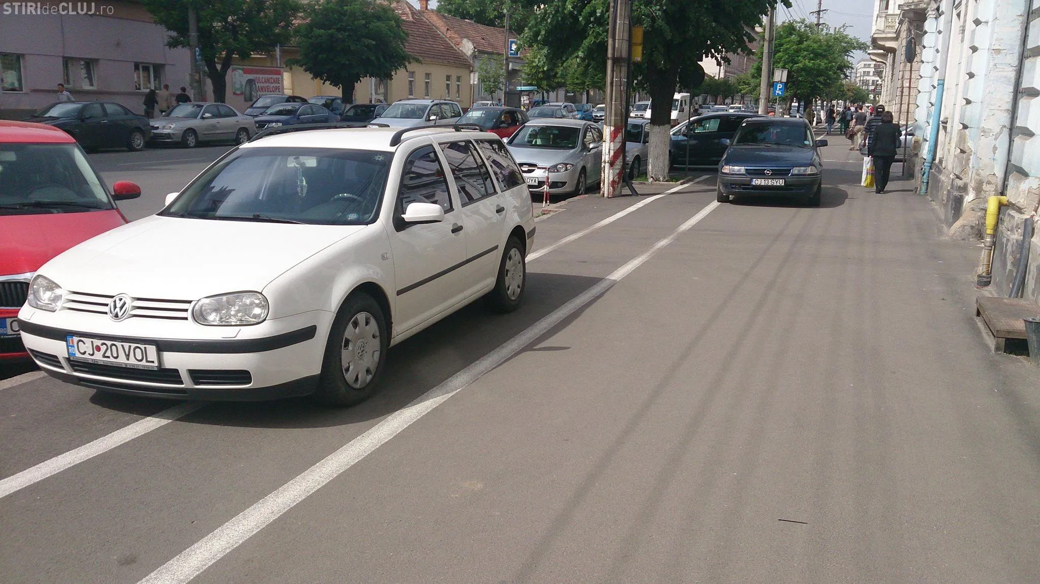 În Cluj e greu și cu mașina și cu bicicleta. Trotuarul de pe Dorobanților pe parcare de mașini - FOTO