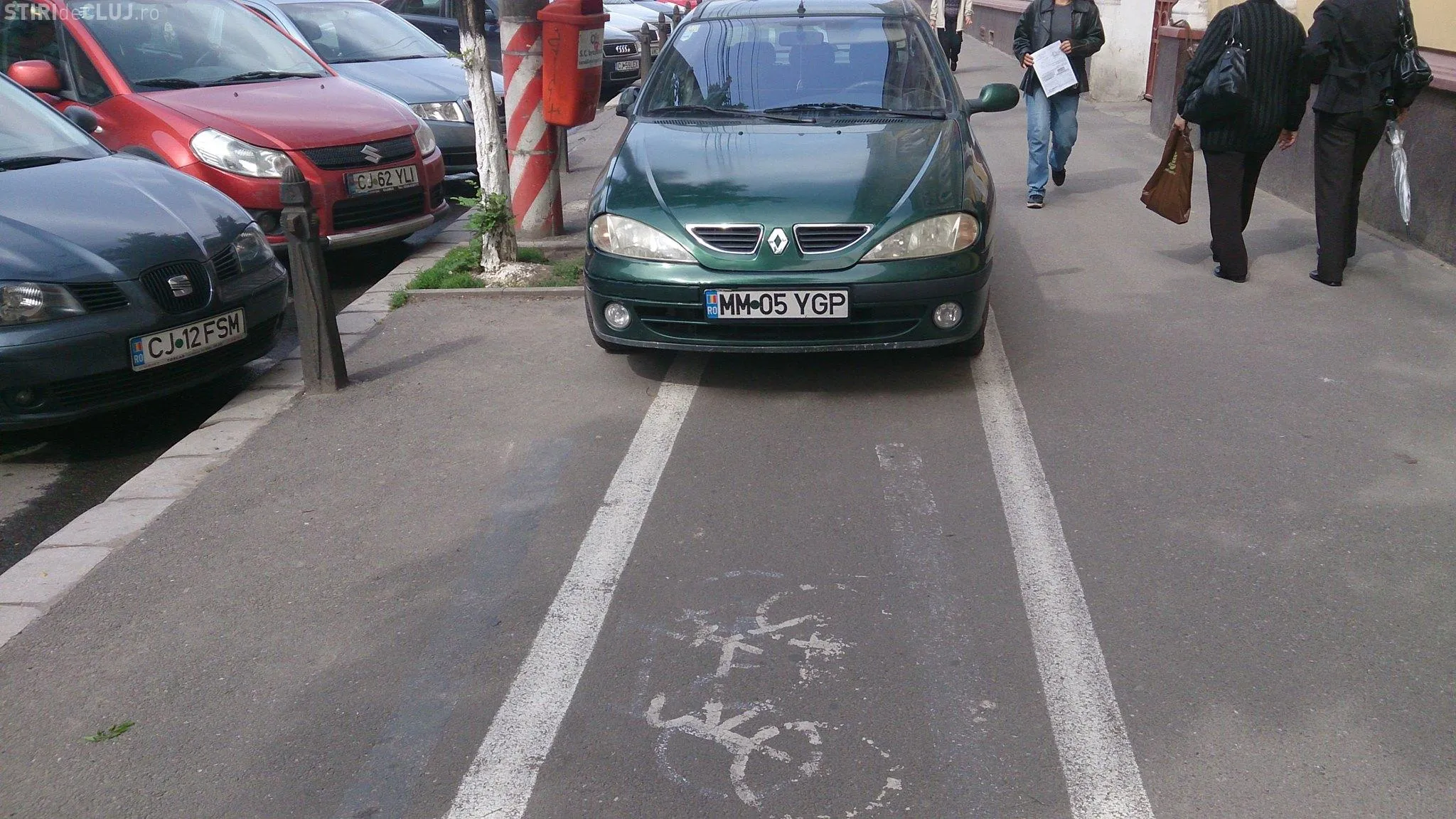 Un cititor Știri de Cluj a fotografiat trotuarul de pe strada Dorobanților, unul dintre puține locuri în care este trasată o pistă de biciliștii.