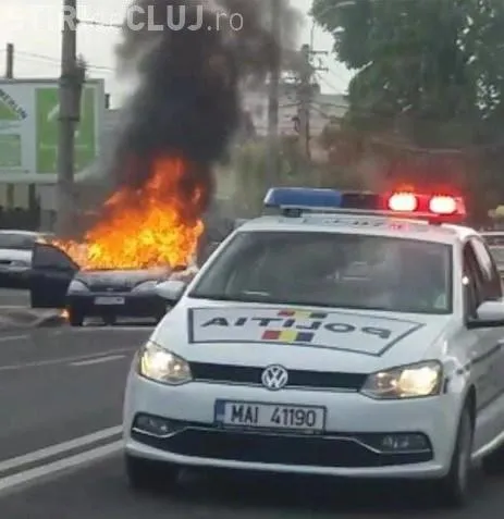 În Cluj-Napoca, pe strada Corneliu Coposu, o mașină s-a făcut scrum – FOTO