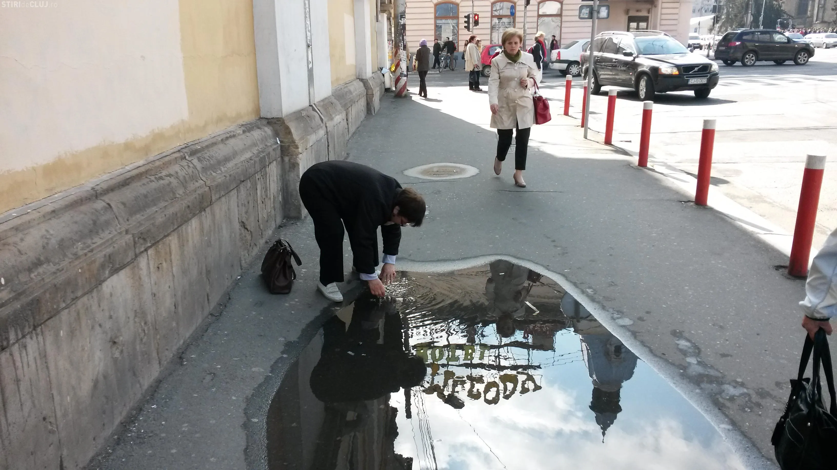 ”Această doamnă se spăla pe mâini într-o baltă, pe strada Regele Ferdinand. Poate că în oraș ar trebui să fie mai multe cișmele sau toalete publice. Oricum si cele care sunt, sunt foarte prost semnalizate și nimeni nu le găsește.