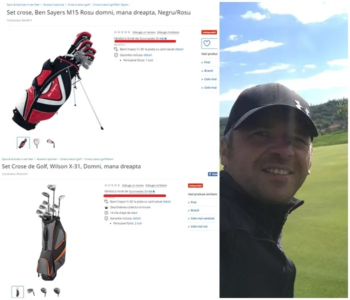 Călin Păcurar deține un magazin de golf pe site -ul emag.ro, dar oferta este acum sărăcăcioasă. Anul trecut, însă, vindea seturi de crose de golf și mult mai multe articole.