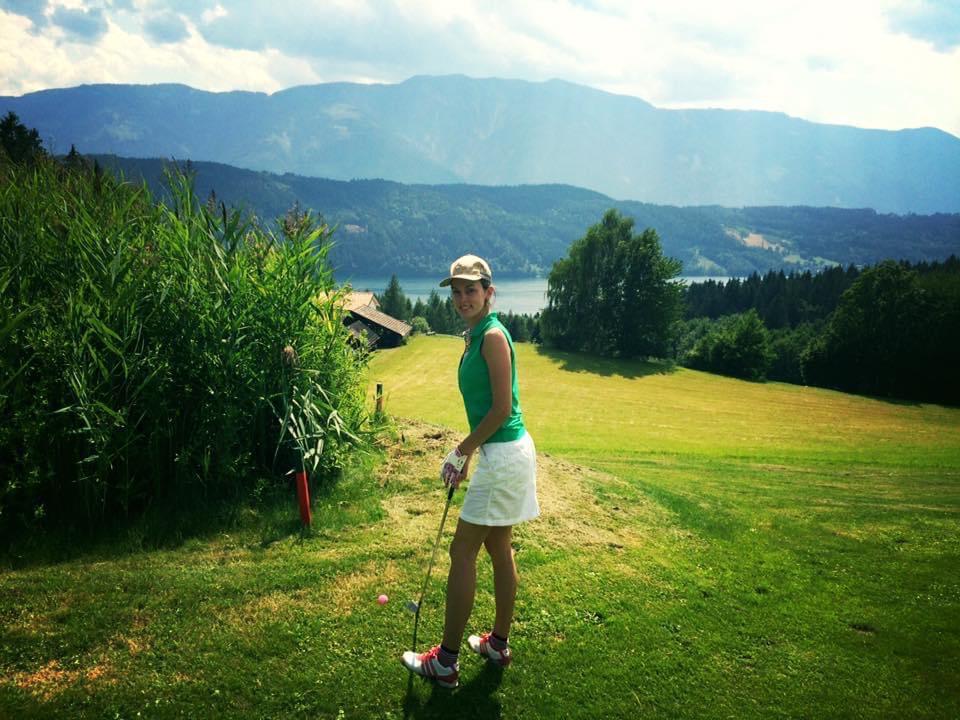 Foto: Cristina Petrovici, jucând golf. Este pasionată de acest sport