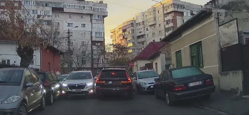Doi șoferi au avut parte de o situație neplăcută în trafic, pe o stradă din Cluj-Napoca, atunci când, din cauza autoturismelor parcate pe ambele sensuri, nu au mai avut loc să avanseze.