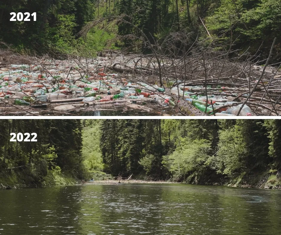 Înainte și după igienizarea pe Lacul Beliș, Minunea Apusenilor. Cine aruncă atâtea gunoaie? - FOTO