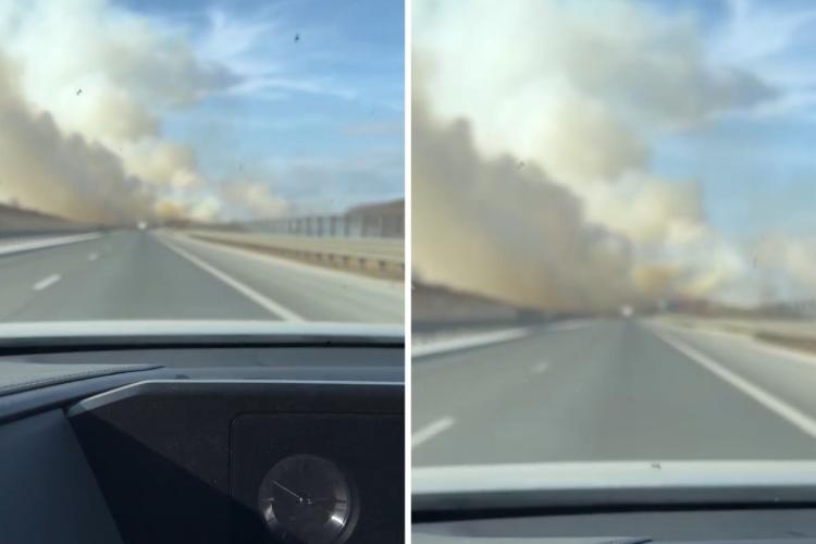Incendiu de vegetație devastator în Cluj! Fumul dens a ajuns pe Autostrada Transilvania / Pompierii intervin de urgență VIDEO