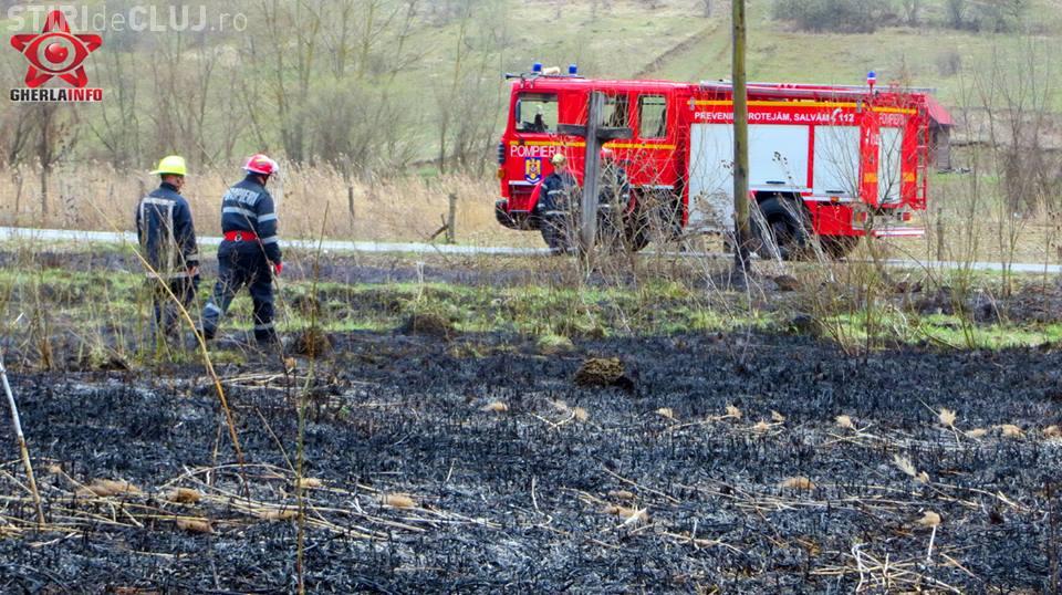 Incendiu de vegetație la Fizeșu Gherlii. Pompierii au ajuns înainte să apuce să se extindă la pădure