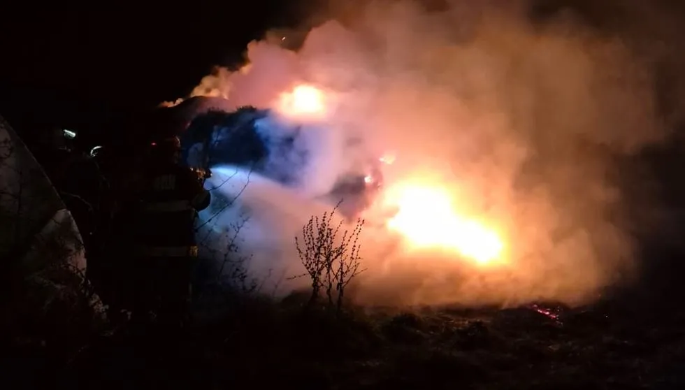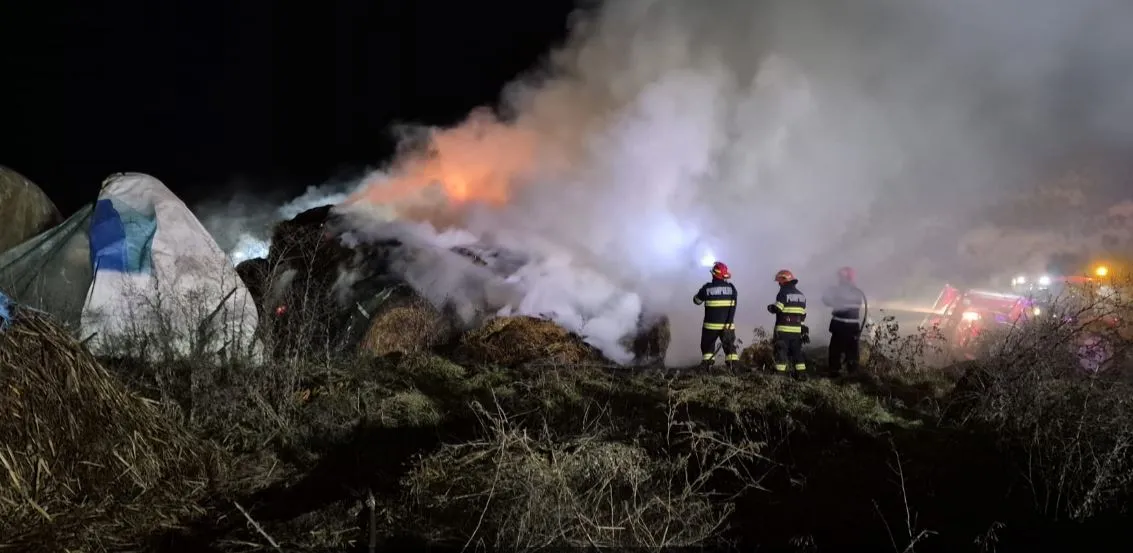 Până la ora 20.45 au fost complet arși circa 50 de baloți, dar echipele de salvare au reușit să evite extinerea focului la alți 100 de baloți.