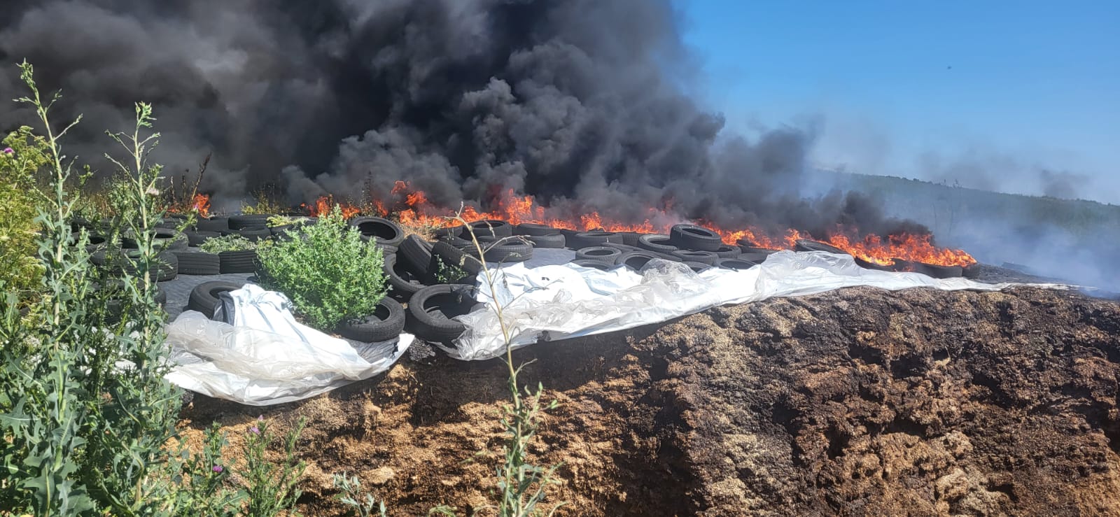 Mai multe cauciucuri au luat foc, duminică dimineața, într-o gospodărie din situată în localitatea Câmpenești, comuna Apahida. Pompierii au intervenit imediat.