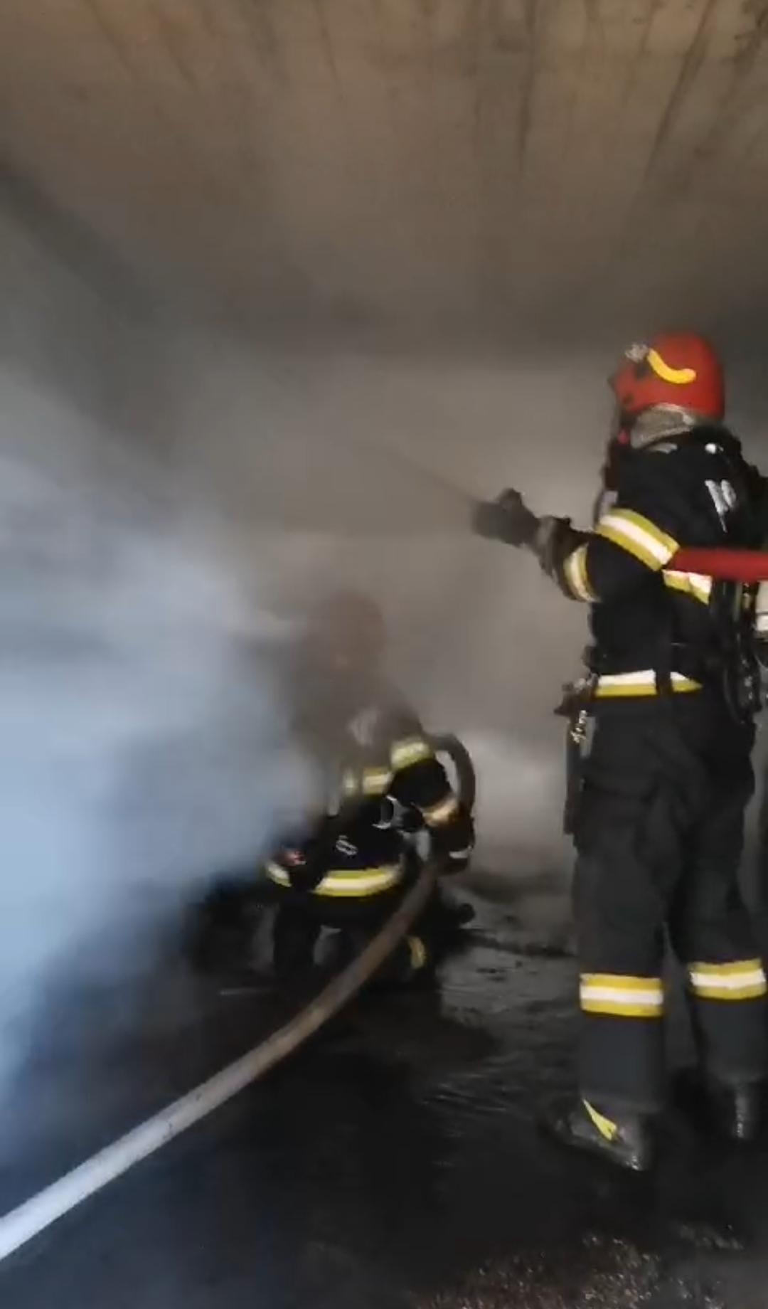 ,,La fața locului au ajuns trei autospeciale pentru stingerea incendiilor și, preventiv, un echipaj SMURD, unde au găsit mașinuțele electrice, parcate într-un garaj peste care era amenajată o terasă, cuprinse în totalitate de flăcări.", transmite ISU Cluj.