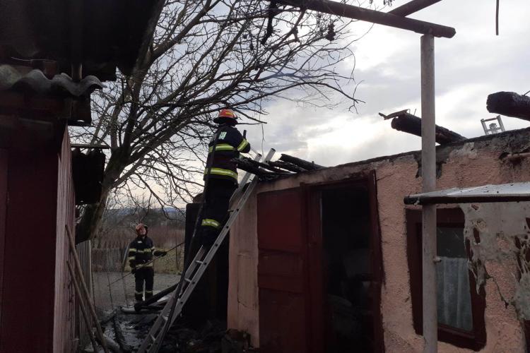 Incendiu în Cluj! O gospodărie a fost cuprinsă de flăcări. A existat pericolul ca focul să se extindă și la casa din apropiere