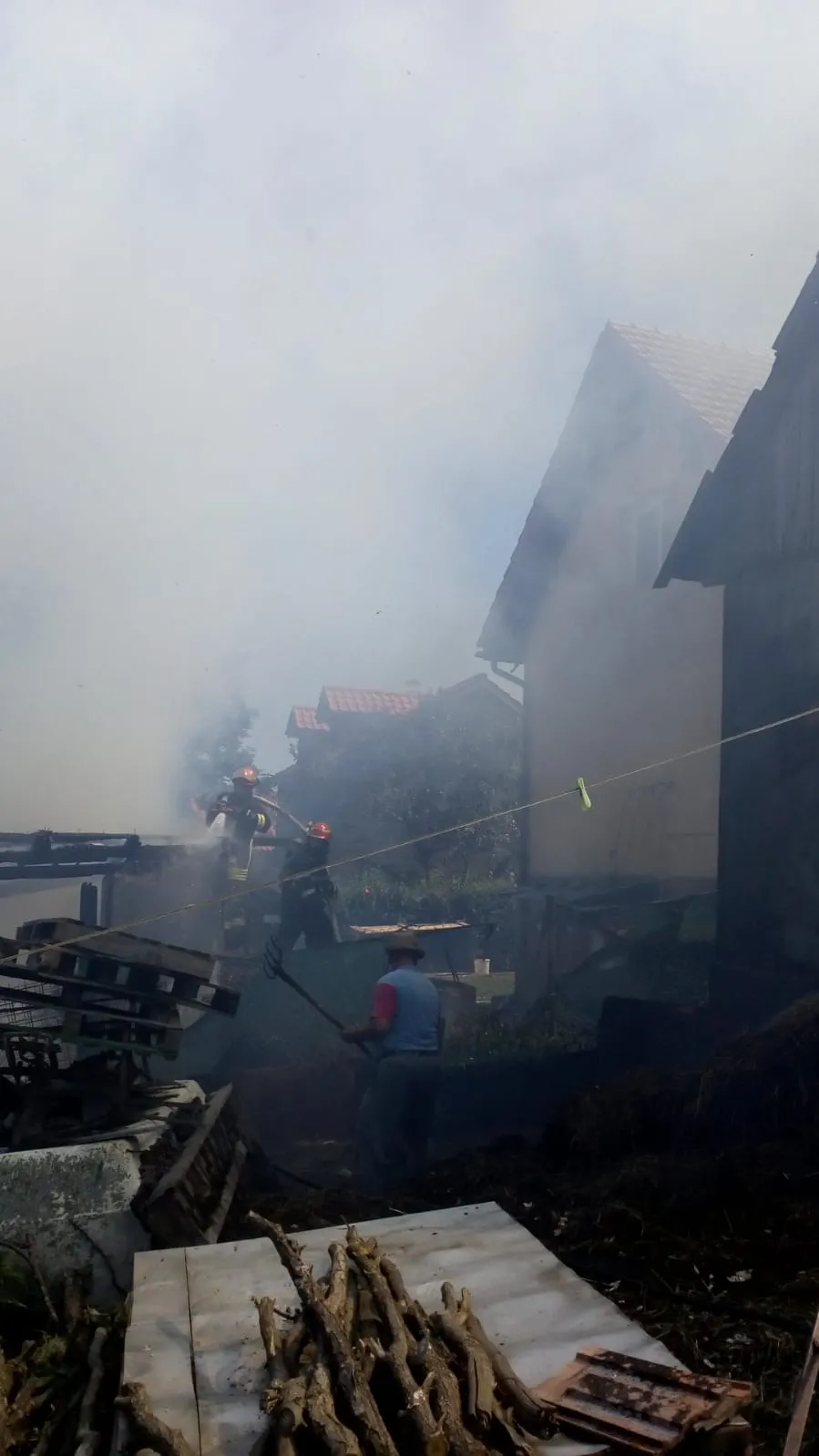 În momentul sosirii pompierilor șura era cuprinsă în totalitate de flăcări și era pe punctul de a se extinde la acoperișul casei de locuit din apropiere.