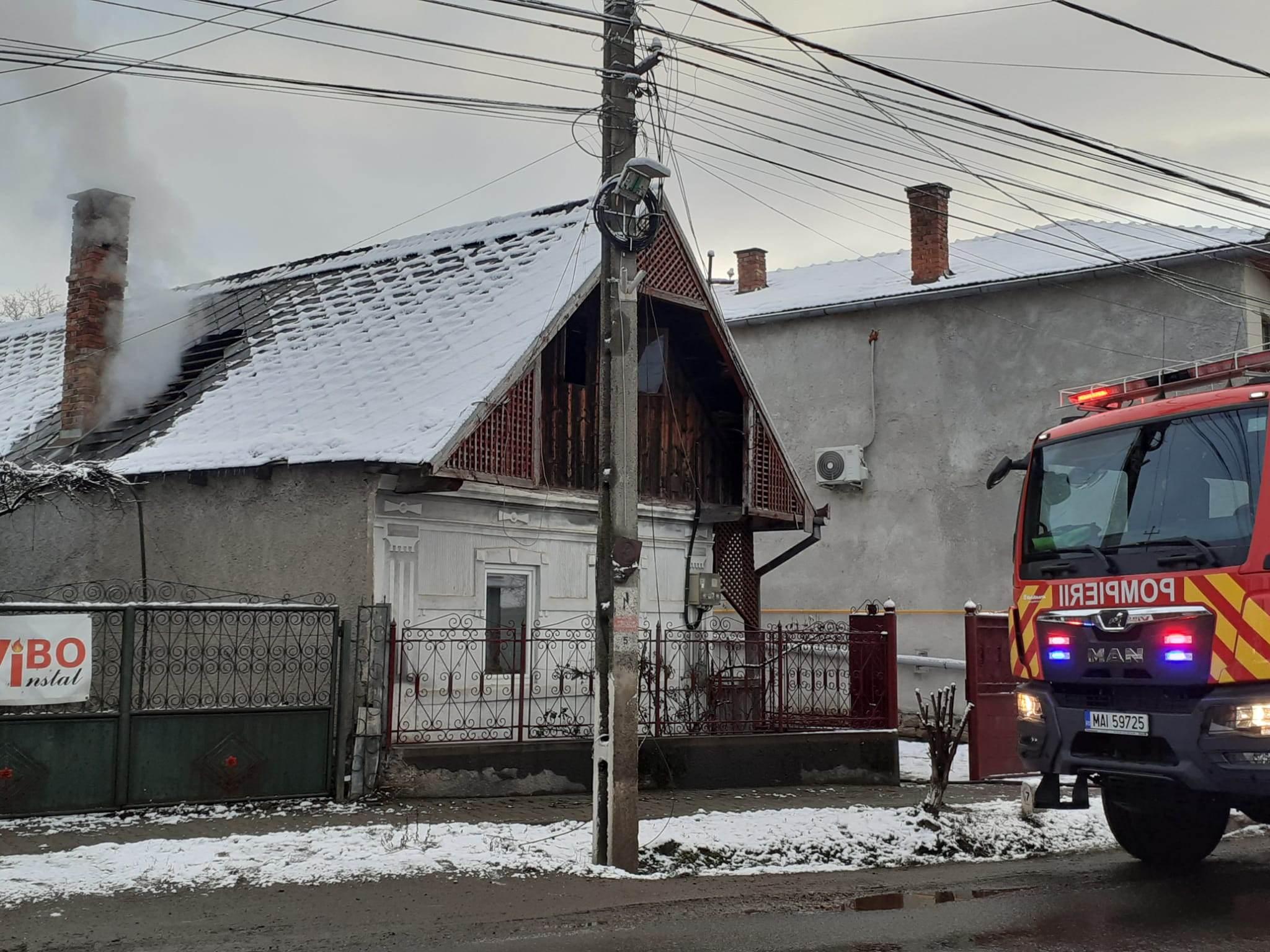 INCENDIU în Huedin, o femeie a fost transportată la spital. ISU Cluj: „Asiguraţi verificarea coşurilor de fum de către o persoană specializată”