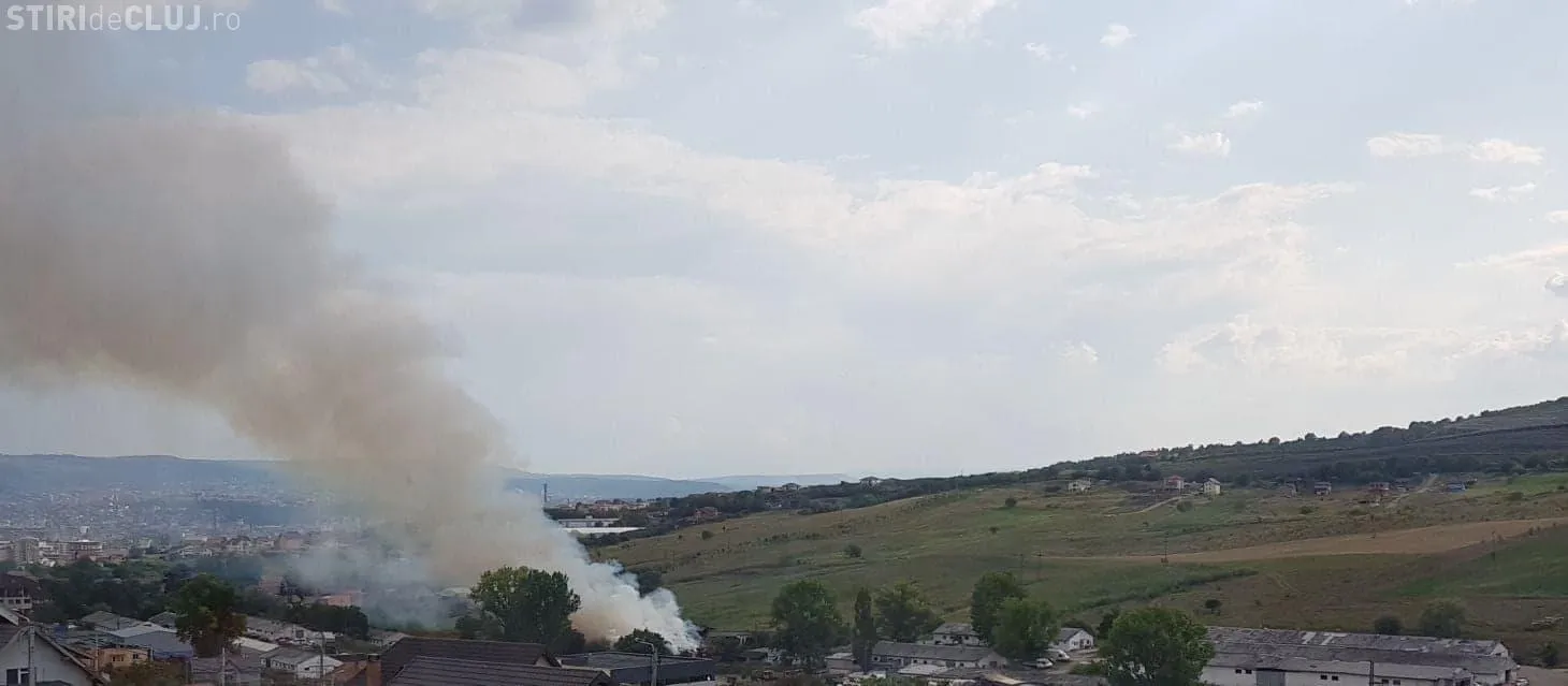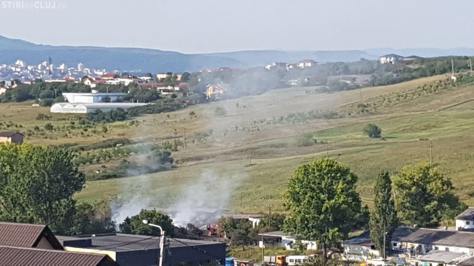 ISU Cluj anunță că incendiul a izbucnit la o firmă care se ocupă cu degajarea resturilor vegetale din cimitire. Poliția a fost sesizată, deoarece există informații că o persoană a pus focul.