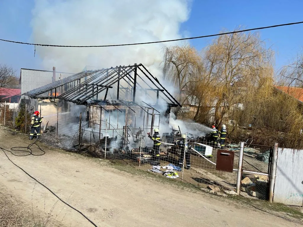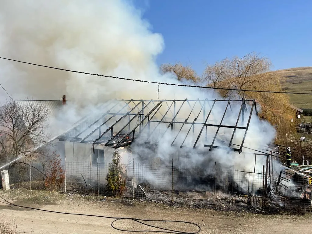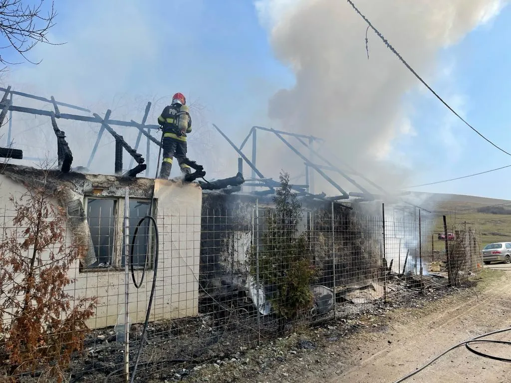 În momentul sosirii pompierilor la fața locului, acoperișul casei ardea în totalitate, iar o încăpere a imobilului cu un nivel era cuprinsă de flăcări.