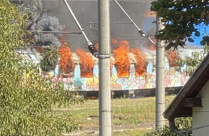 Din primele informații, focul a cuprins un vagon dezafectat și s-au exstin până la o magazine din apropiere.