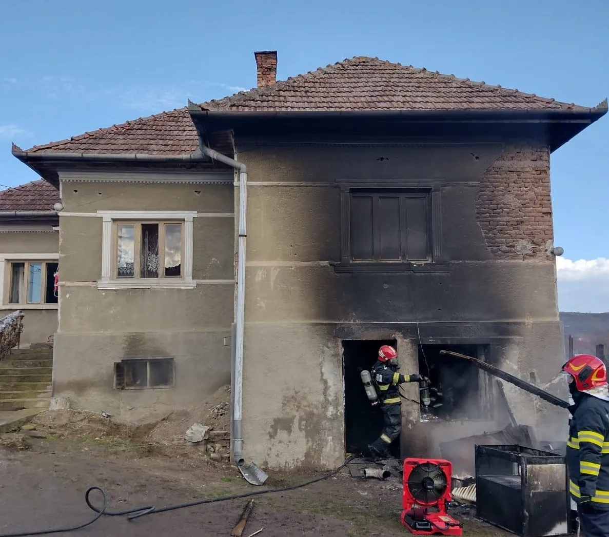,,Pompierii au finalizat această intervenție. Incendiul s-a manifestat generalizat, la o cameră din subsolul casei, pe o suprafață de 20 de metri pătrați. De asemenea, a fost afectată fațada, pe o suprafață similară, de 20 de metri pătrați. Pe parcursul misiunii, forțele noastre au scos o butelie din încăperea cuprinsă de flăcări. Referitor la bărbatul care a primit îngrijiri medicale, acesta a refuzat transportul la spital. Datorită intervenției prompte, s-a reușit protejarea casei, iar incendiul a izbucnit cel mai probabil din cauza unui burlan necurățat", a transmis ISU Cluj.