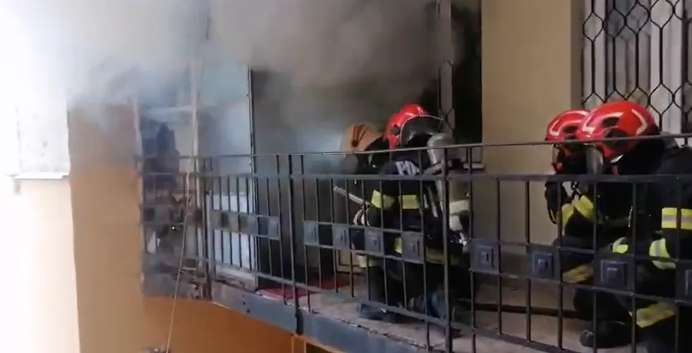 Incendiu într-un bloc de pe strada Clinicilor din Cluj! Misiune de căutare-salvare a pompierilor clujeni. Au intervenit cu 3 autospeciale - VIDEO