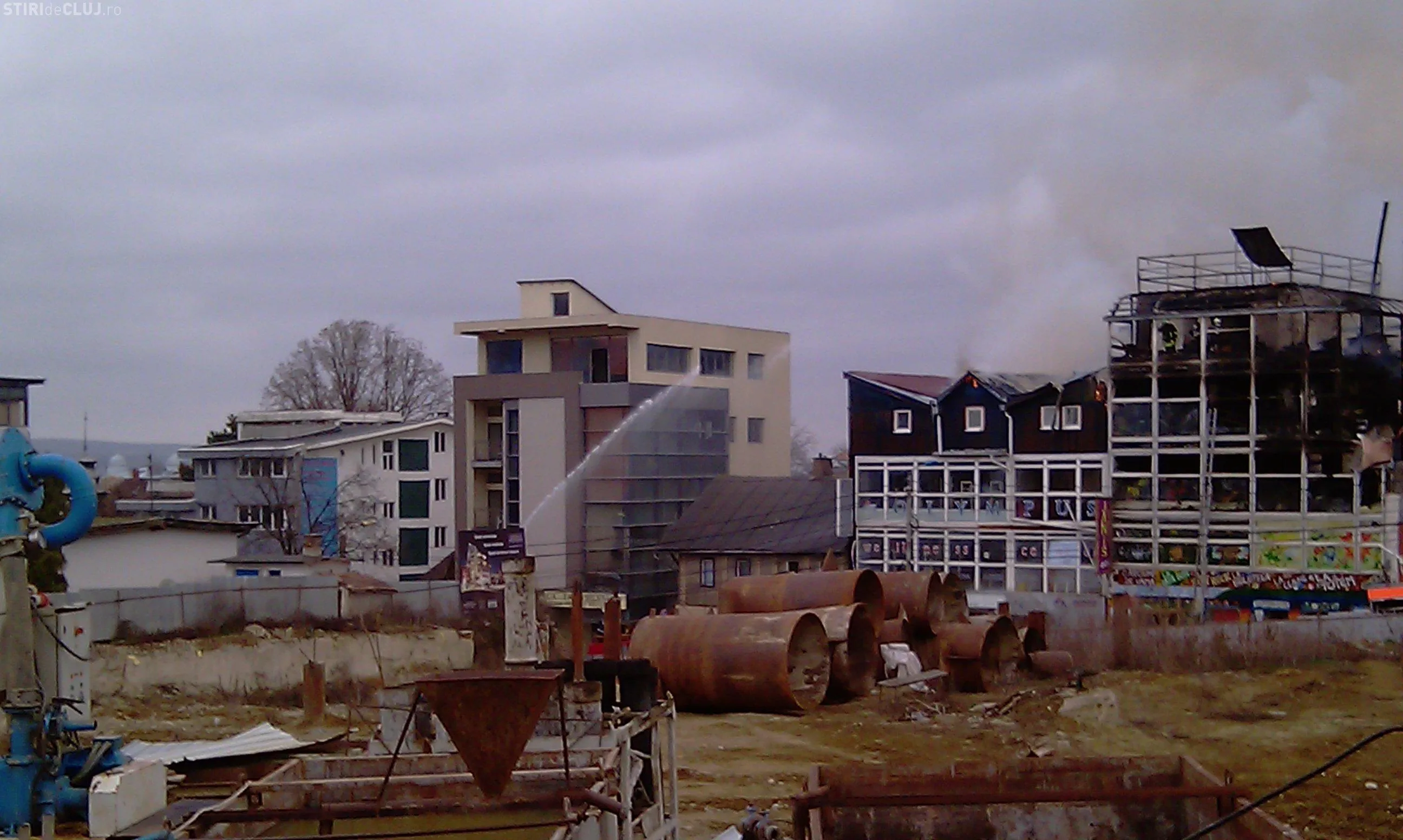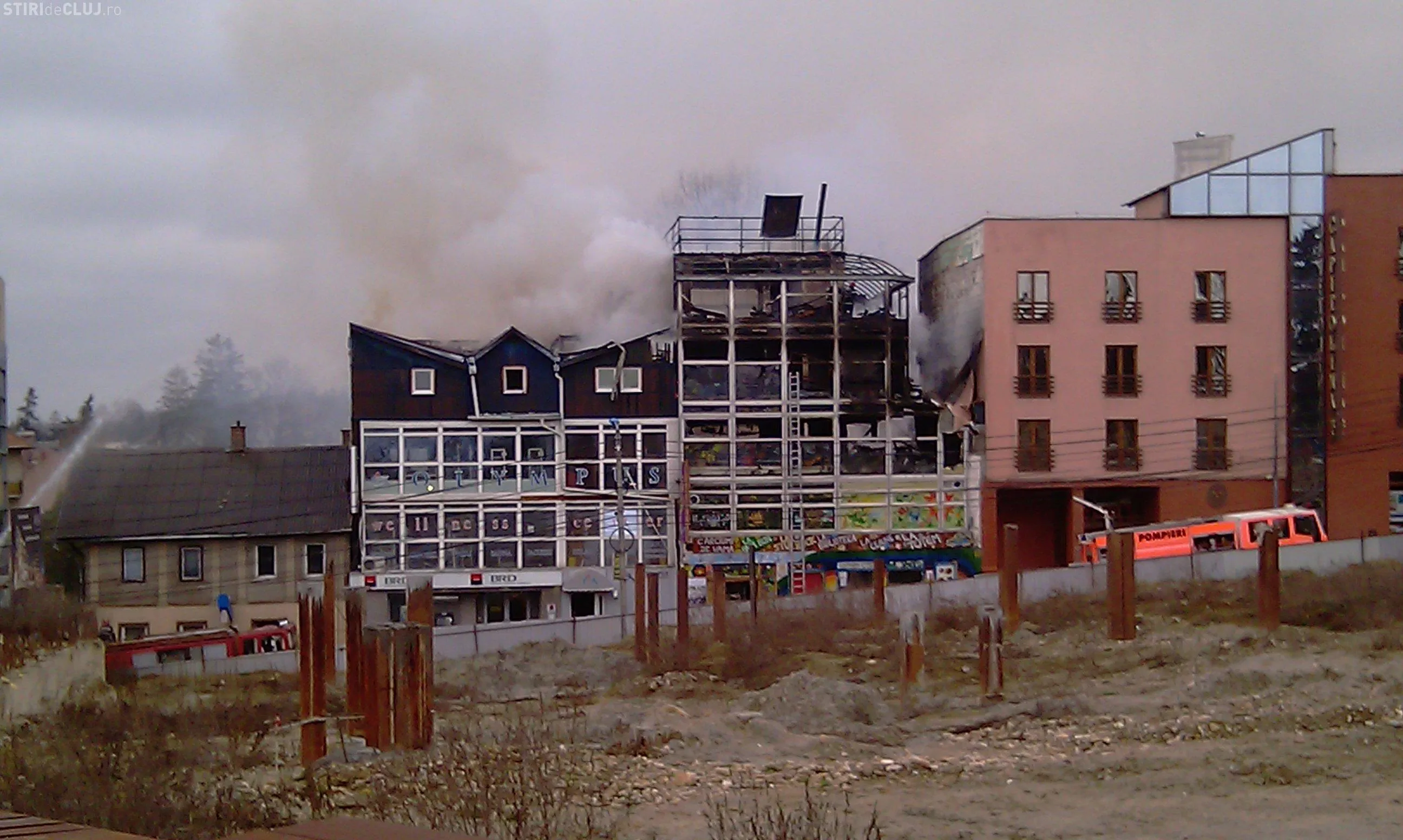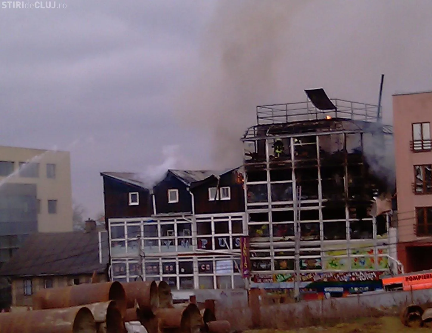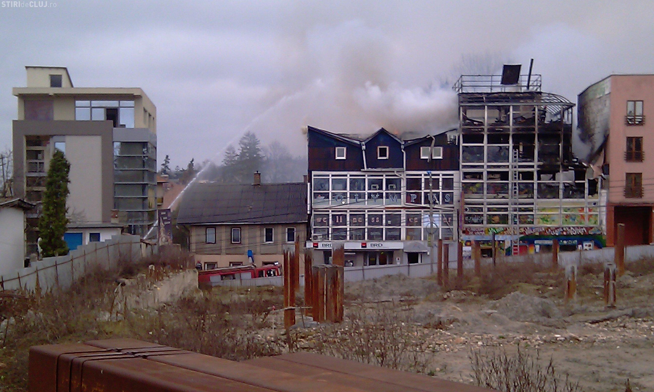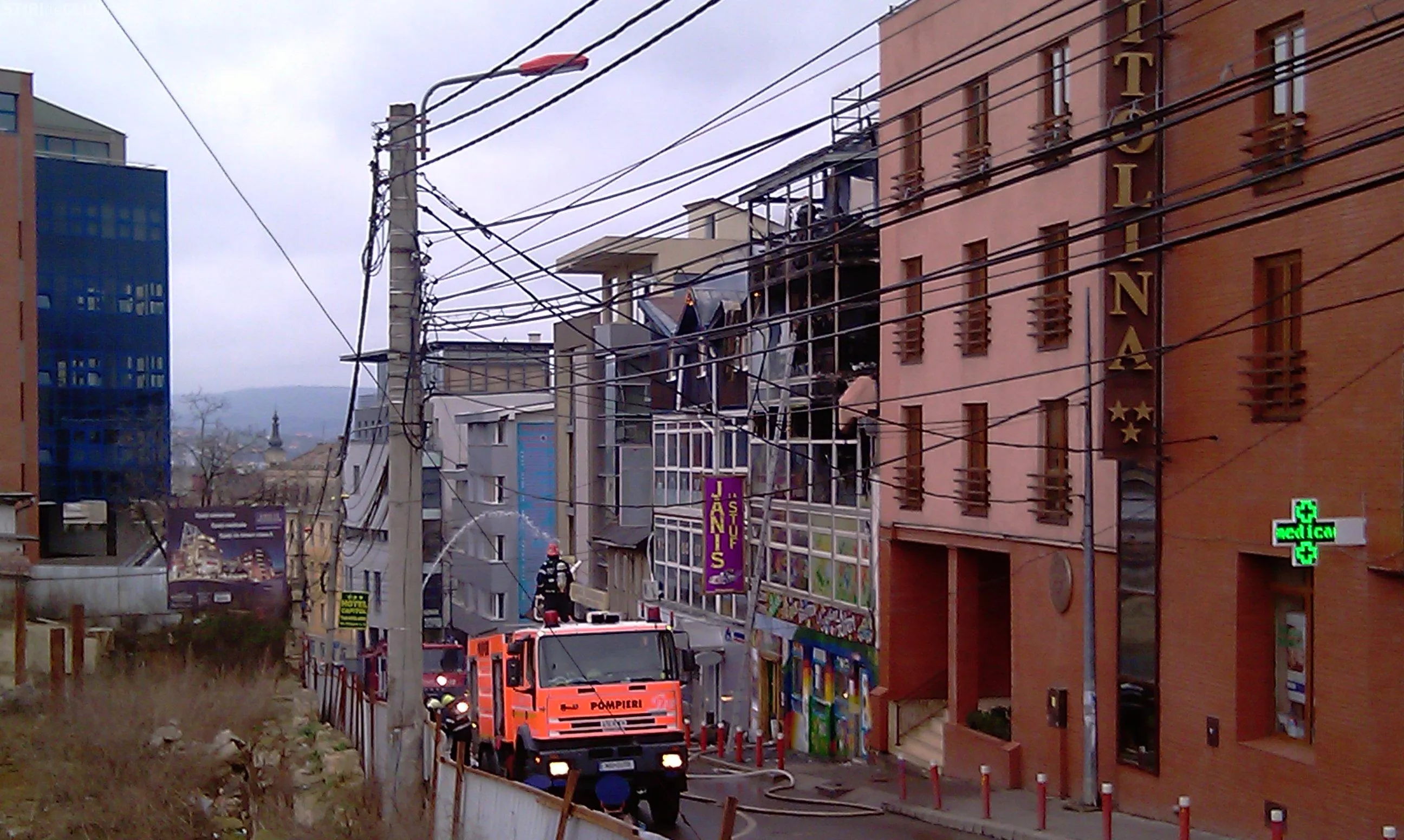 Un incendiu de proportii a izbucnit la clubul Janis Stuf din Cluj (fostul Nera) in jurul orei 9.00. Flacarile au cuprins ultimele trei etaje ale clubului si s-au extins cu repeziciune si la cladirea invecinata in care functioneaza un sediu al BRD.