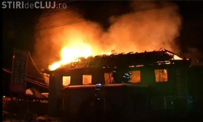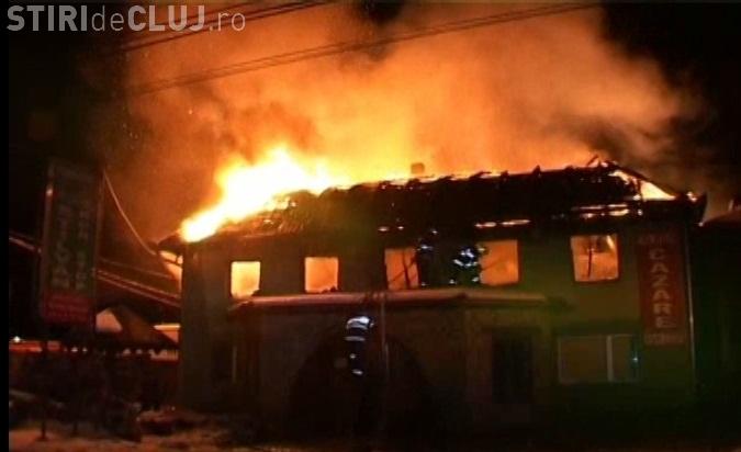 O pensiune a fost distrusa de flacari in urma unui incendiu izbucnit in noaptea de duminica spre luni pe strada Bistritei din Dej.